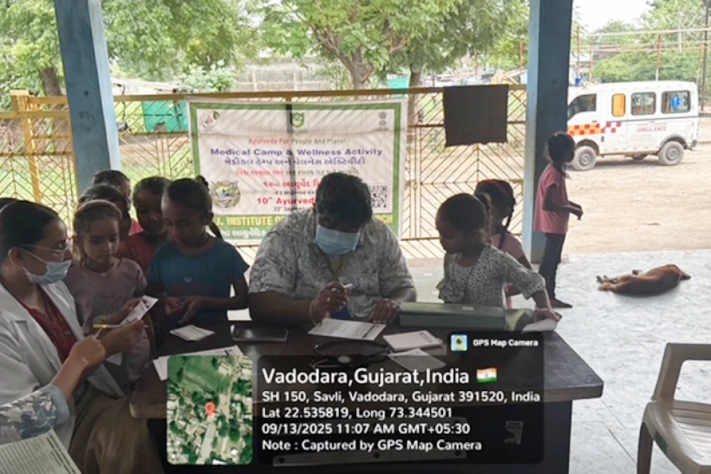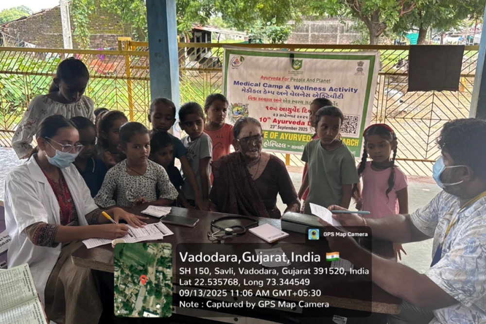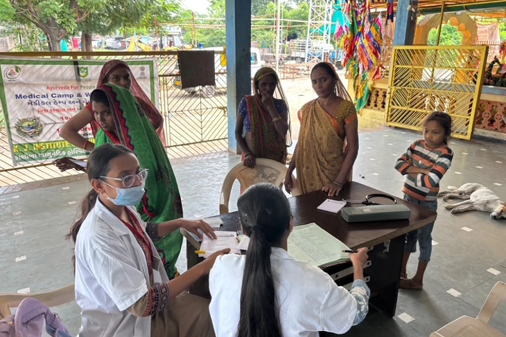 As part of the 10th Ayurveda Day celebrations, the Department of Kayachikitsa, K.J. Institute of Ayurveda & Research, Savli, organized a Free Medical Camp on 13th September 2025 at Ranipura Village under the leadership of Dr. Adarsh, with the dedicated support of interns Rakshit Patel, Arth Patel, Vidhi, and Anjali.