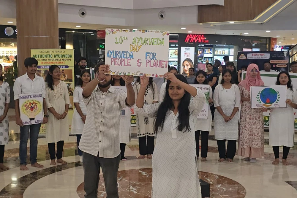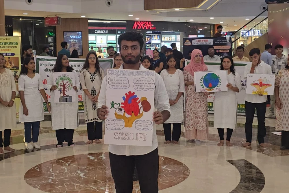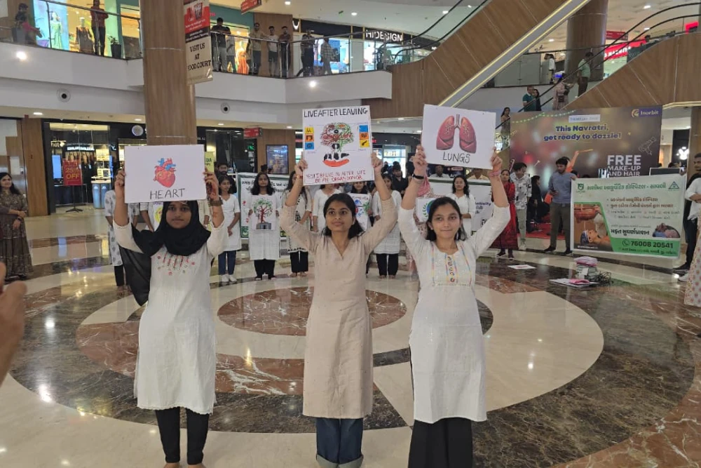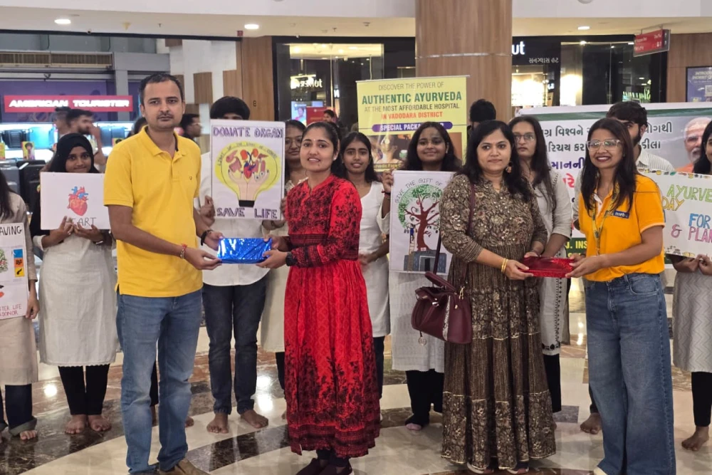 The Department of Rachana Sharir, K.J. Institute of Ayurveda and Research, Savli, organized a Street Play on Organ Donation on 21st September 2025 at Inorbit Mall, Vadodara.