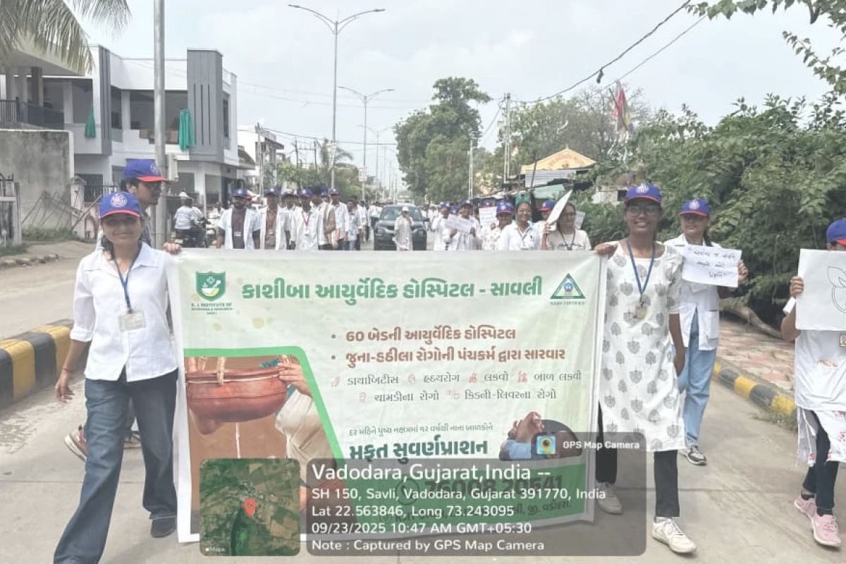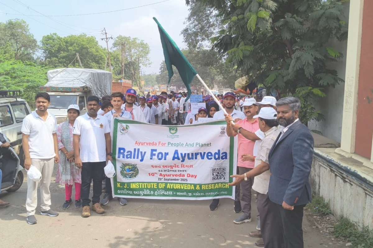 The Department of Agadatantra, K.J. Institute of Ayurveda & Research, Savli, successfully organised a Rally for Ayurveda on the occasion of the 10th Ayurveda Day 2025 under the theme “Ayurveda for People and Planet”.