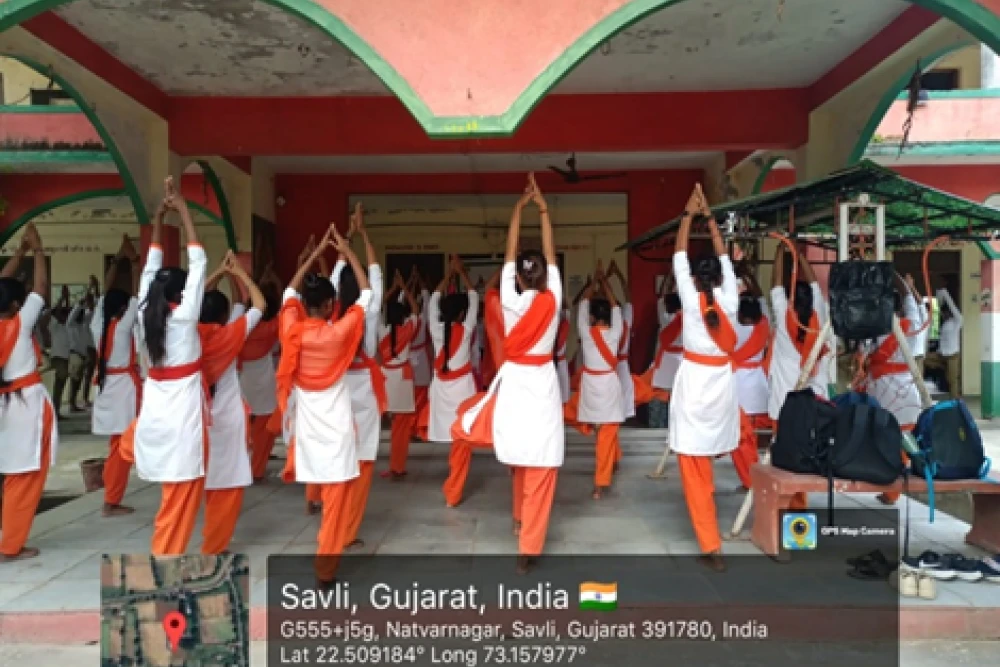As a part of the 10th Ayurveda Day 2025 celebrations, Department of Swasthavritta, K.J. Institute of Ayurveda and Research, Savli, organized a Yoga session on 18th September 2025. The event was aimed at spreading awareness and promoting benefits of Yoga and meditation among high school students. The Yoga session was arranged esp for the exam going 10th and 12th class students of Sanskarbharti Vidyalaya. The session included various Asanas for enhancing the concentrating power and memory of students. The yoga session was then followed by a meditation session . students experienced improved flexibility and calmness of mind.