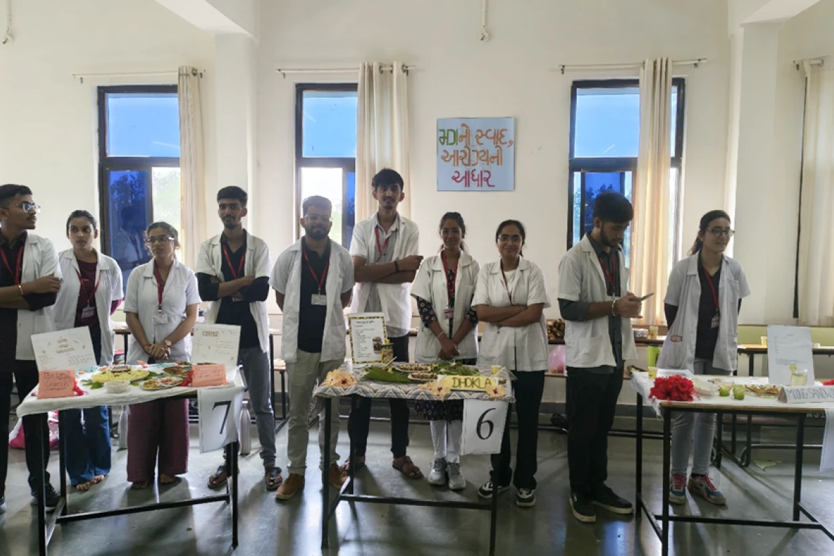 The department of RSBK was successfully organized a competition on “Moong: Nature’s gift for Nutrition” Recipe competition 2025 on 19/09/2025 at seminar hall, KJIAR. The event was aimed to promote healthy eating habits and showcase the nutritional as well as culinary versatility of Moong. Single use of Mudga was not favourable for all invidual/child but this type of innovative recipes made more palatable and acceptable to a wider group. The event was planned to encourage students to explore innovative recipes using Moong while highlighting its medicinal and dietary importance in ayurveda. The Judges of this event was Prof. (Dr.) Sarat Vasudev sir, Mr. Devang Shah sir and Dr. Sunita mam. Active involvement of around 160 students and 20 faculties. Students prepared a variety of innovative recipes using Moong such as Moong Chilla, Moong Dhokla, Moong Sandwitch, Moong Taco, Moong Kabab, Moong Chat, Moong Appam,Moong Dalwada etc. Each participant presented the nutritional values, health benefits and importance of recipes. Chief guests appreciated the creativity, innovation, presentation and explanation of ayurvedic significance by students. Motivational slogans and banners emphasizing the theme of Ayurveda dietician for holistic health.