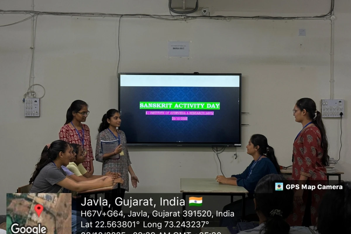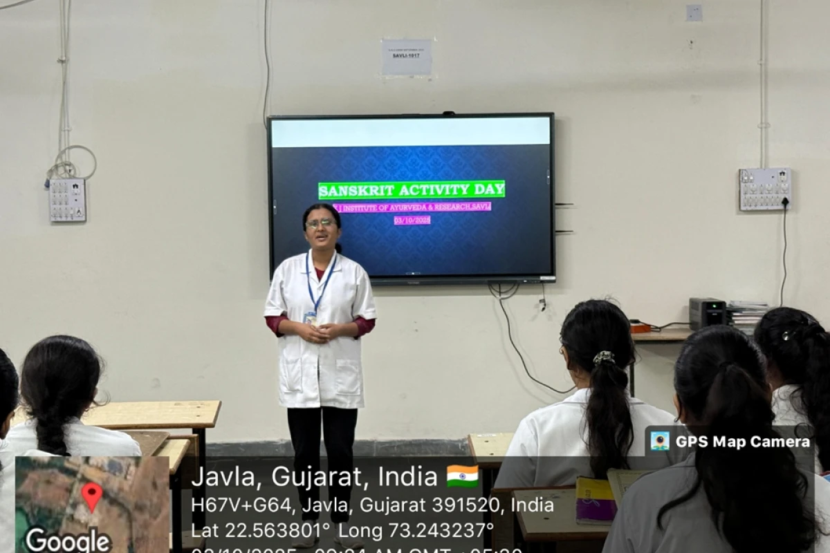 - As a part of sanskrit club kjiar, the sanskrit club kjiar first prof., K.J. Institute of Ayurveda and Research, Savli, organized the “sanskrit activity day” on 03 October 2025, from 09 am to 11 am at 11 Number Room, K J Institute of Ayurveda & Research, Savli.
